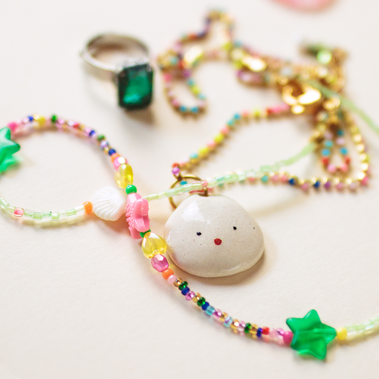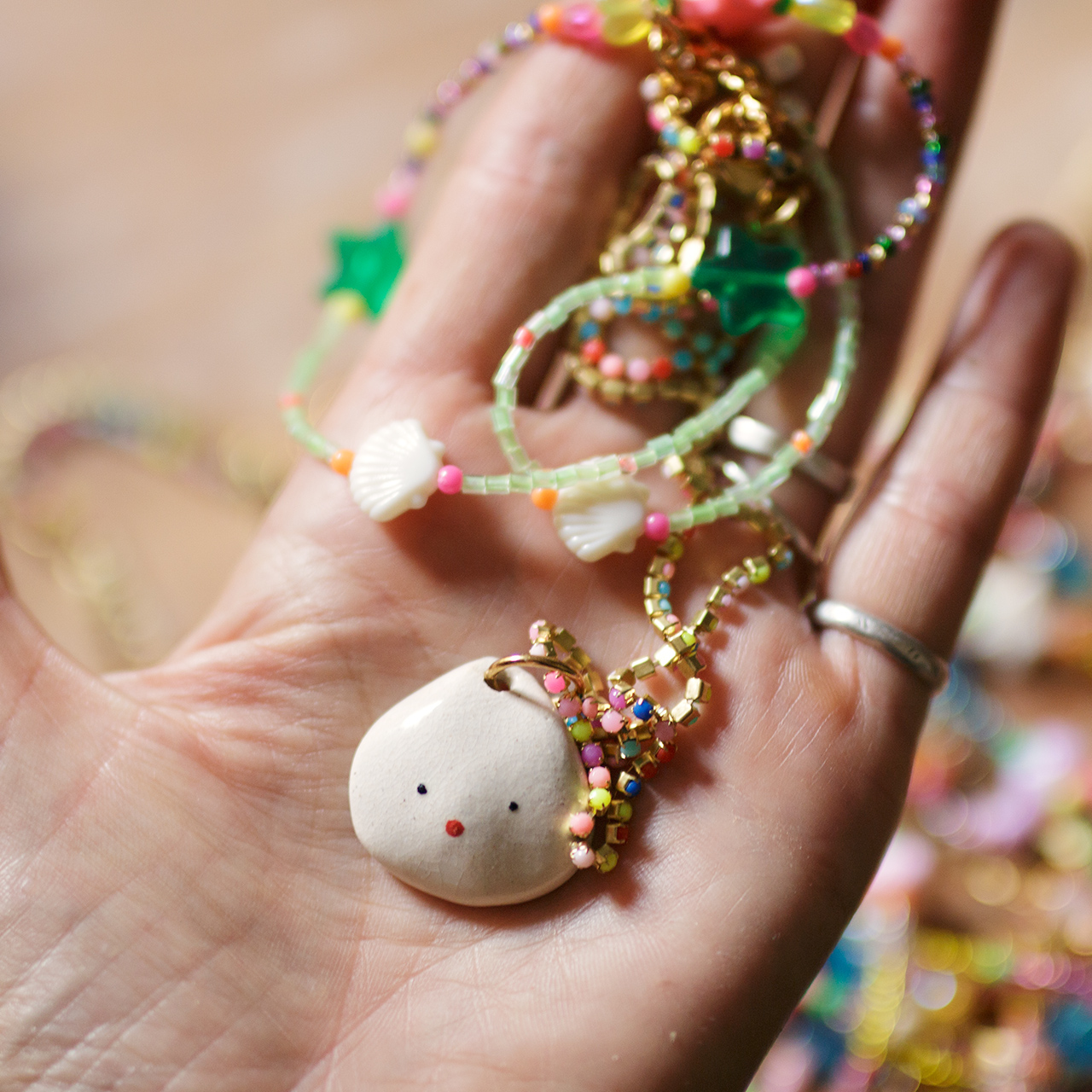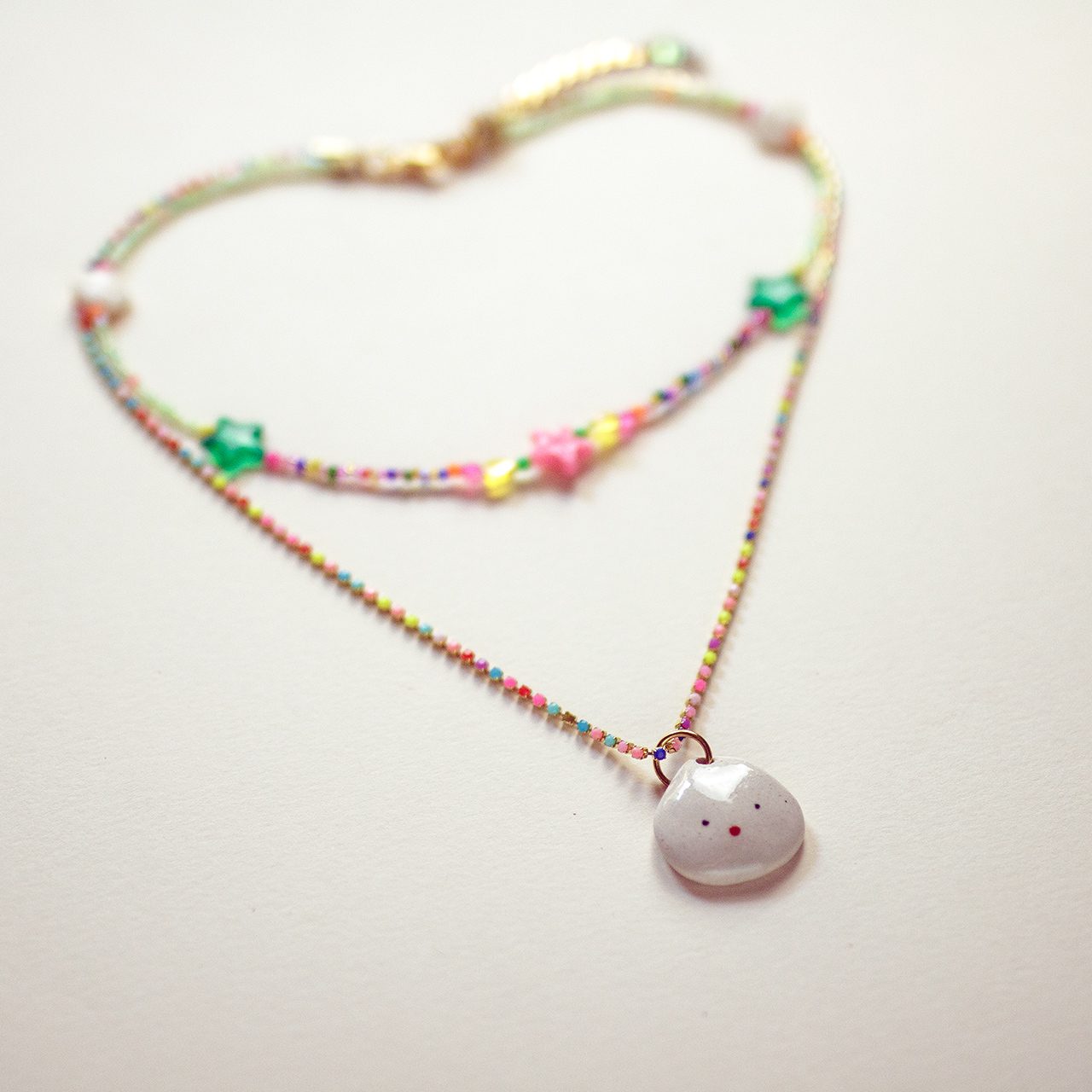 I designed these child-like necklaces for fun-loving mermaids who wish wearing something whimsical and girly. Something girly and naive that brights a summer day.